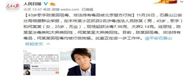 同日,陈羽凡方面的巨匠公司也发表声明,强烈谴责那些造谣生事者,声称陈羽凡绝对没有吸毒。可是就在下午1时44分时,名为“平安石景山”的官方微博发布消息,实锤陈姓男子吸毒事件后,陈羽凡与巨匠公司的于今日所发布的个人微博及声明已经默默删除。