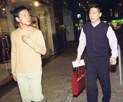 原因是,张国荣发现有狗仔队跟踪偷拍,唐鹤德起初不解这个举动,困惑地回头看了一眼,留下了下面照片中这半个惊觉后担心又可爱的回首。当他看见了后面偷偷摸摸的闪光灯,发现了爱人坚定的笑容,便领会了他的用意,也毅然转过身去再也没有回头。牵得如此义无反顾、坚定而磊落。