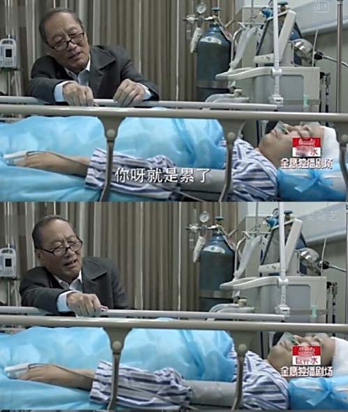 陈海出车祸被送到医院抢救,陈海在医院躺着的画面,陈海的下巴动了,还抿了抿嘴~